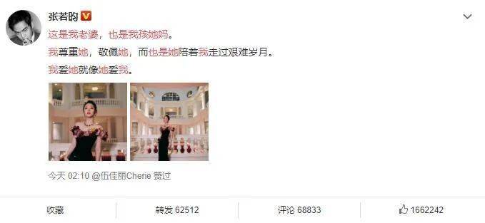 隨后張若昀發文甜蜜表白: “這是我老婆,也是我孩她媽。我尊重她,敬佩她,而也是她陪著我走過艱難歲月。我愛她就像她愛我。”猝不及防吃了一口狗糧,兩位太甜了吧!
