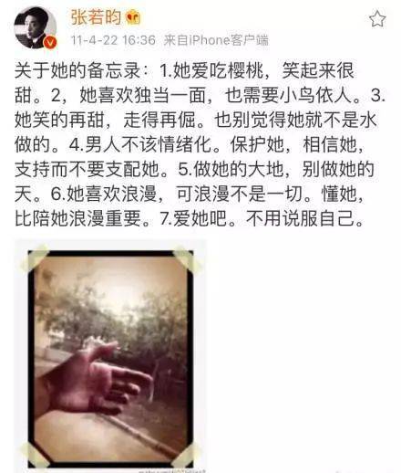 2011年兩人剛在一起一年,也就是這時候,張若昀就開始發微寫言情日志了,寫出了自己對愛的表達與種種。