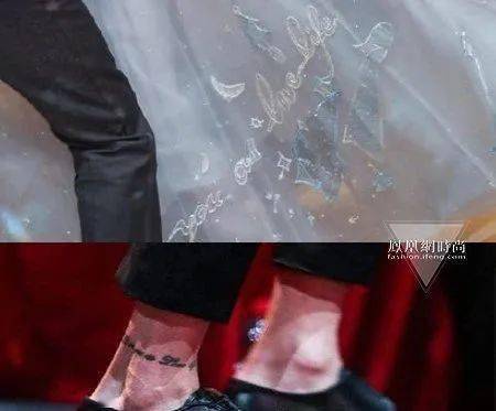 另外,唐藝昕舞會時穿的禮服裙上還繡了她跟張若昀的情侶紋身, “love you as love life”,可以說超級甜了~