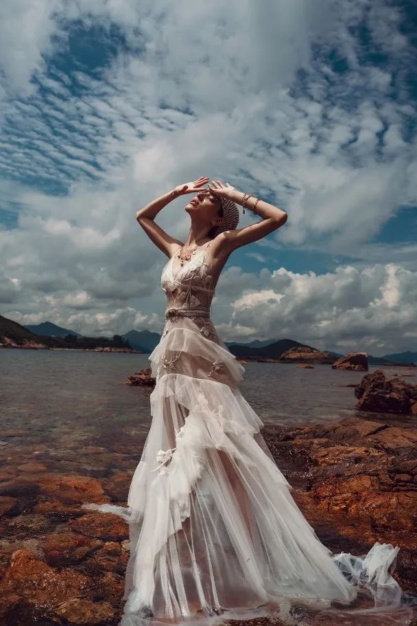 陳凱琳的五官可謂是相當的立體,現在更是升級成為了一位妥妥的辣媽,照片中的她站在海邊山石上,一雙修長的腿在白紗裙里若隱若現,上位也十分有料,不得不說這是多少女生夢寐以求的好身材呀!