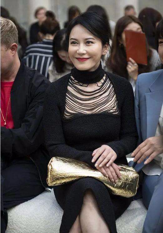 這種黑色的裙子比較的性感,顯得俞飛鴻看起來特別的知性溫柔,有了修圖就是不一樣,整個人看起來都顯得漂亮了許多,而且皮膚也特別的好啊。