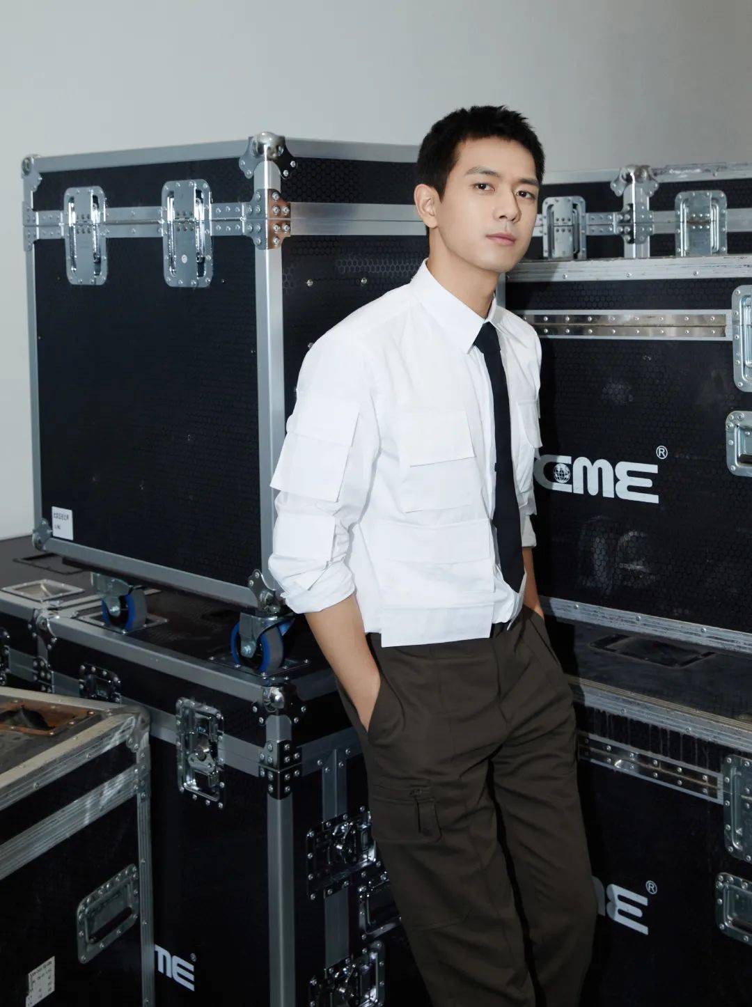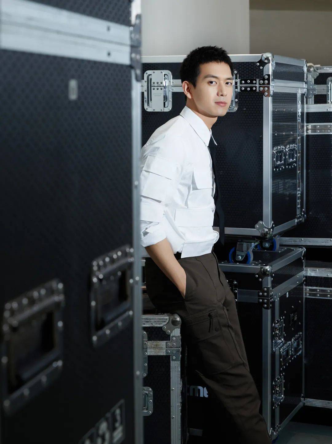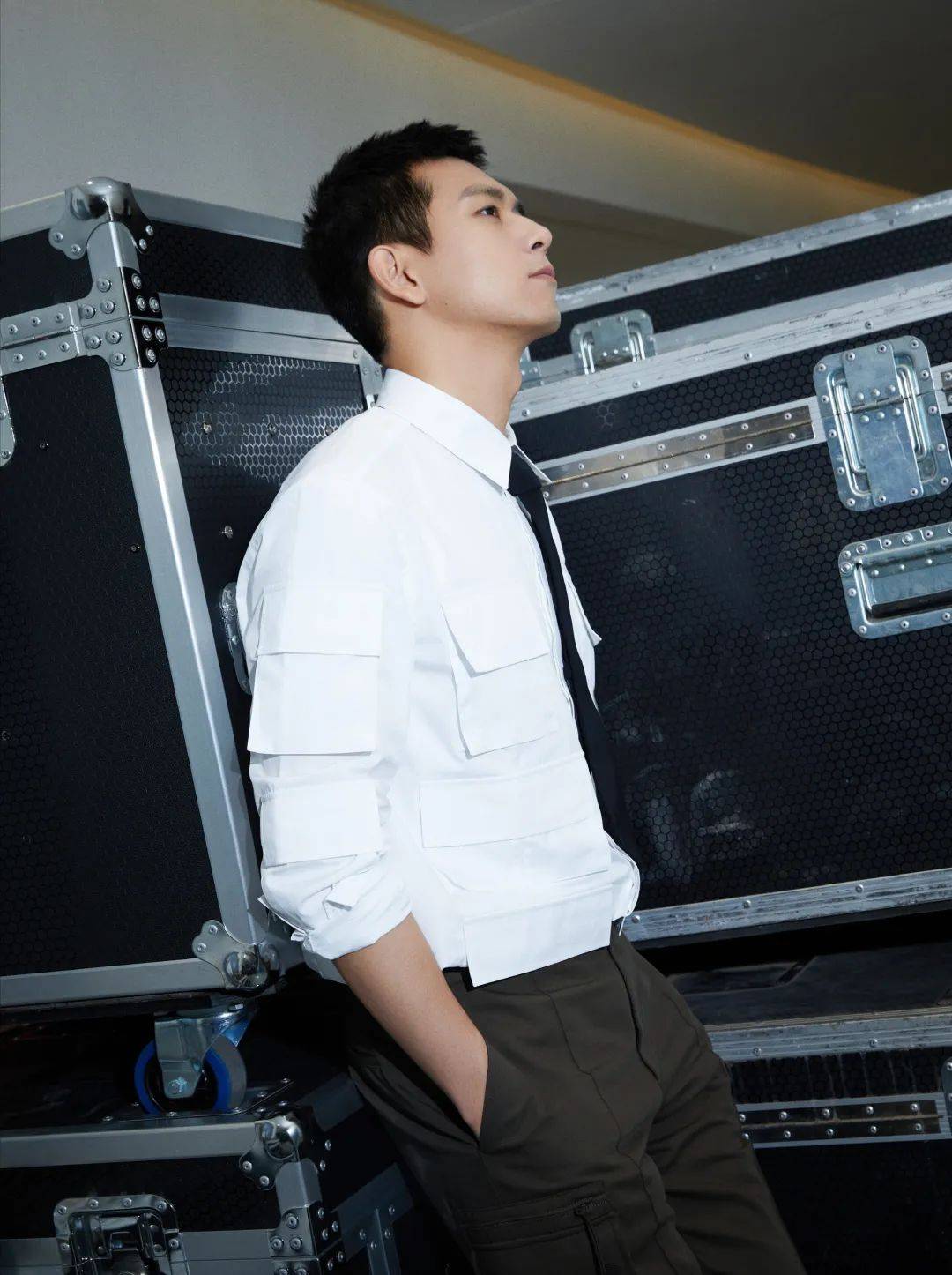 ▼?李現活動造型公開,白色襯衫搭配黑色長褲,挽起袖口,穩重中帶有一絲活潑,展示型格熟男的風尚。
