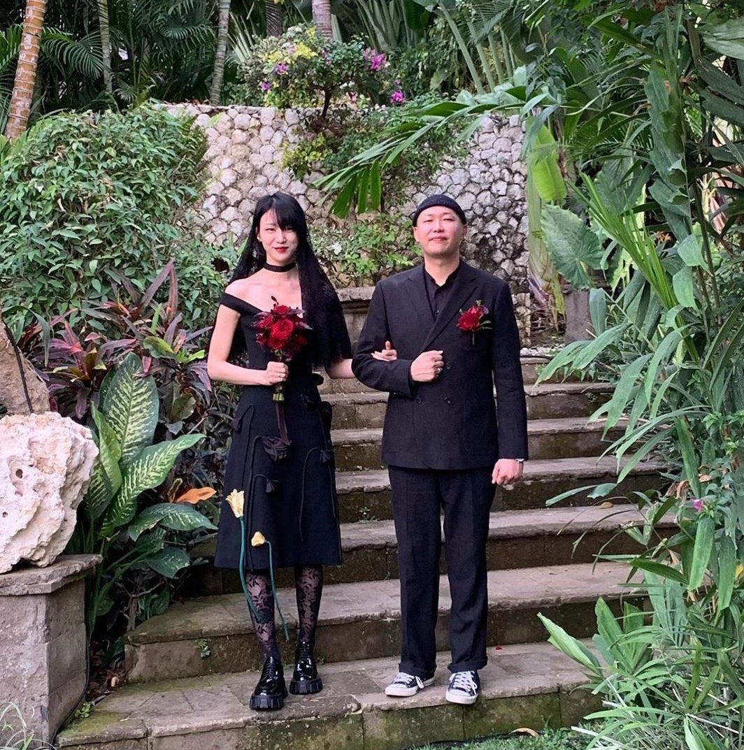 雖然事業正處在巔峰期,但崔素拉還是義無反顧地結了婚,婚禮上一套與眾不同的黑色小短裙婚紗,點綴上立體的花朵,輕披著黑色頭紗,也確實很有崔素拉自己的風格。