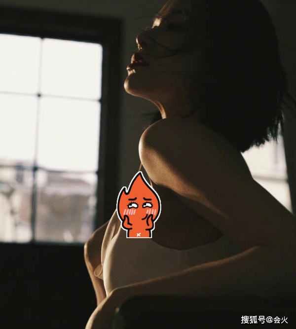 隨后,身靠沙發的她,臂膀纖細,側臉面對著鏡頭,棱角分明嘴唇微張,豐滿的上圍在光影中顯現,十分迷人。