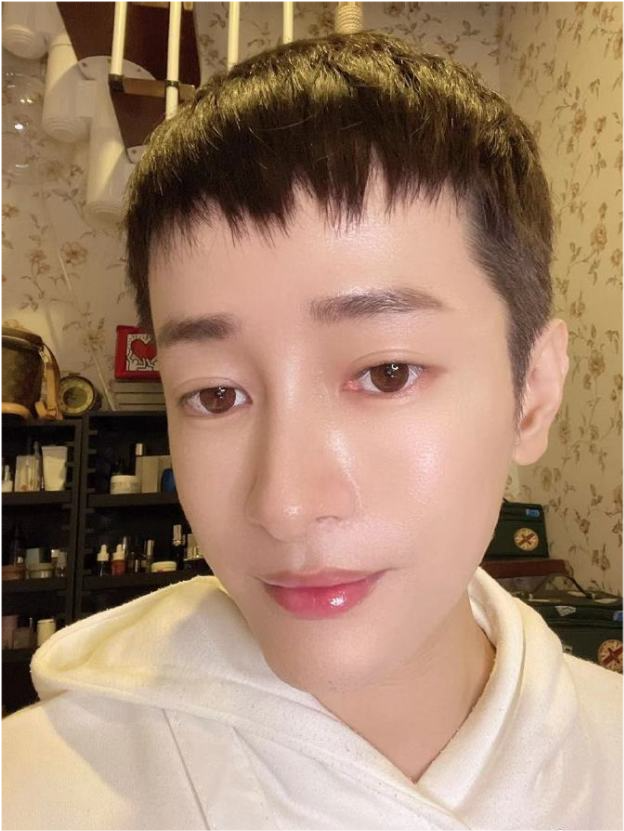 隨后,李奇潭分享了一段剃頭后痛哭流涕的分手視頻。視頻中的他素顏出鏡,不愧為知名美妝博主,盡管是懟臉近拍他的臉都毫無瑕疵,皮膚通透,只是哭的時候情緒太激動,青筋凸起,整張臉都紅了,眼睛又紅又腫。