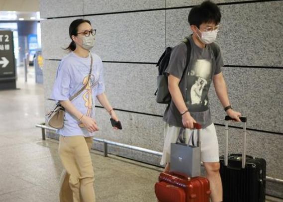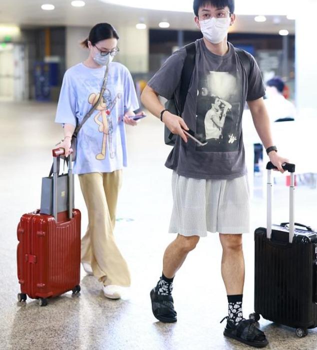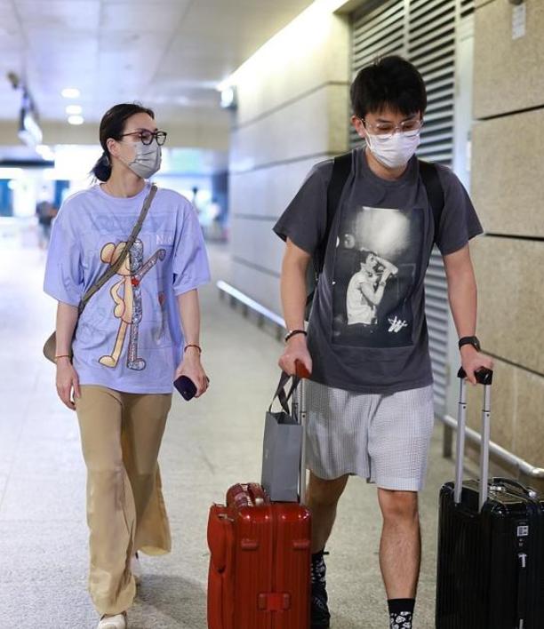 夫妻倆此次露面很低調,各自推著手中的行李箱快步行走,期間吳敏霞一直盯著手機,兩人沒有進行交流。