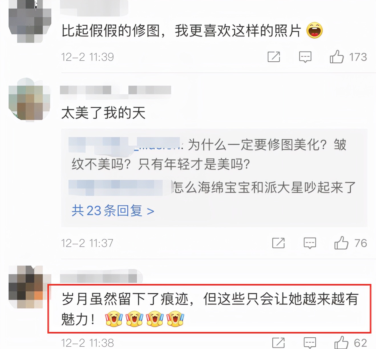 網(wǎng)友們看到這組照片后,稱這才是五十幾歲女明星最真實(shí)的狀態(tài),不修圖、不美顏,大方地展現(xiàn)皺紋,反而會讓人覺得很美。大部分人都覺得,劉玉玲臉上有歲月的痕跡,這些皺紋讓她越來越有魅力。