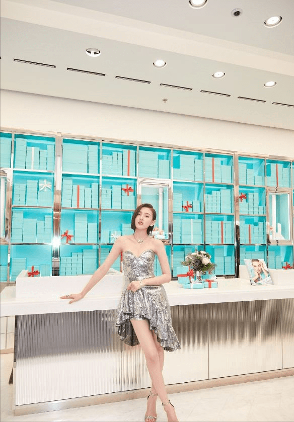 抹胸樣式帶著點小性感滋味,暴露悅目的肩頸線條,搭配細膩華美的鉆石項鏈,銀色亮片裙夢境華美,填塞小公主滋味。
