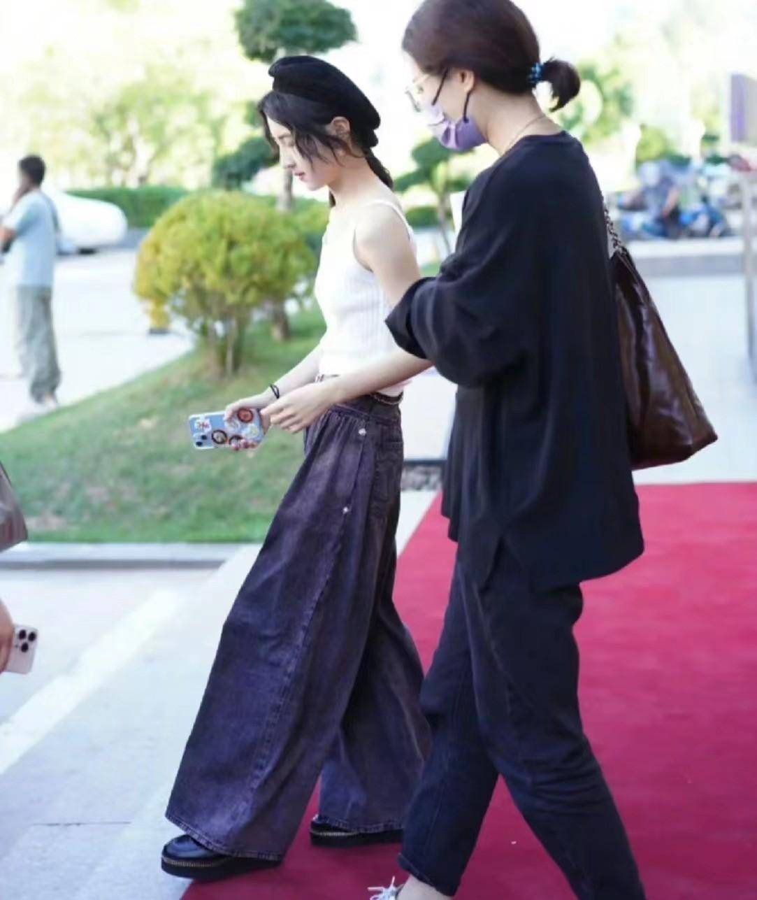 這身造型也充分的強調了張子楓的好身材,白色背心雖然是吊帶的款式,但是因為她的直角肩,讓背心穿出了很驚艷性感的味道,搭配高腰線的闊腿褲,褲子不僅很肥大,也很長,所以也就讓張子楓的身材比例更出色了,側面看一雙大長腿讓人好羨慕啊!