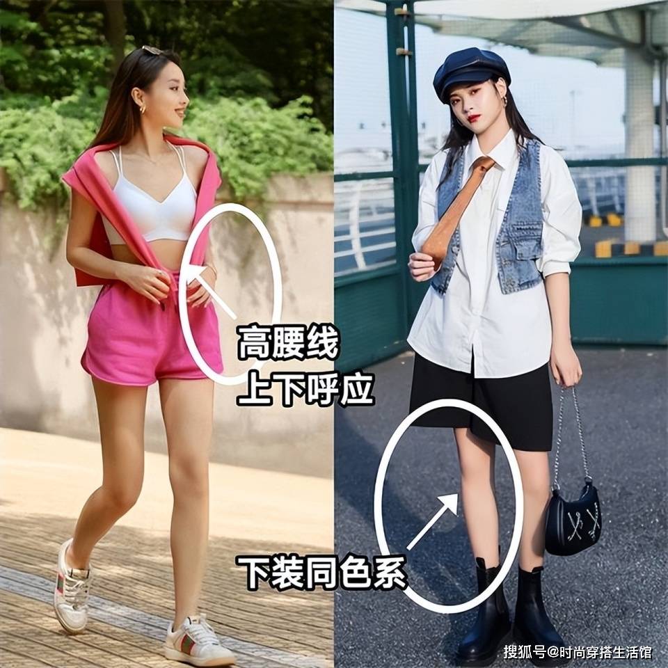 穿長褲時一定要用上下半身或整體同色系的穿法,配上三七分或二八分的高腰線,誰還不是個大美女了?短褲或者長褲可以通過上短下長或帶V型開叉的上衣,提高腰線,增強上半身亮點來穿出大長腿哦~