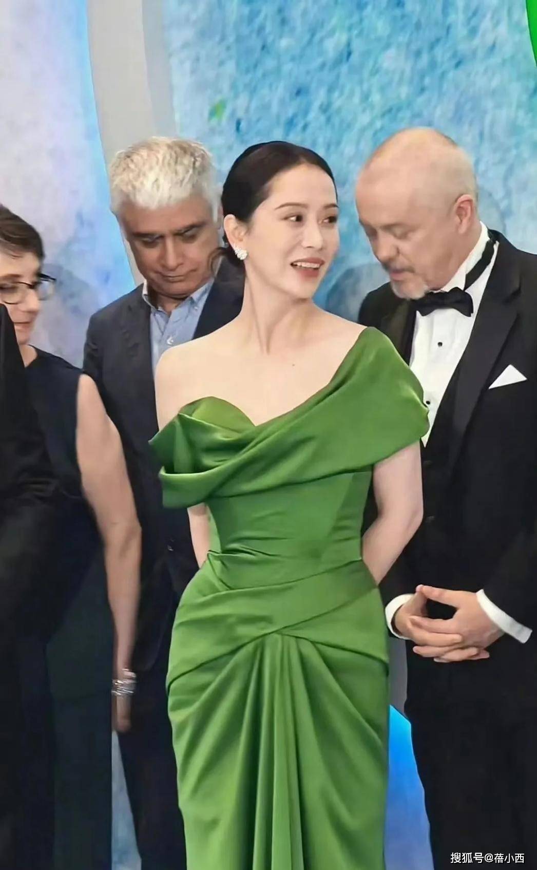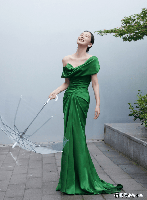 裹胸式的領(lǐng)口美到窒息,這也是用心之處,既沒(méi)有走光的風(fēng)險(xiǎn),又修飾了肩線。