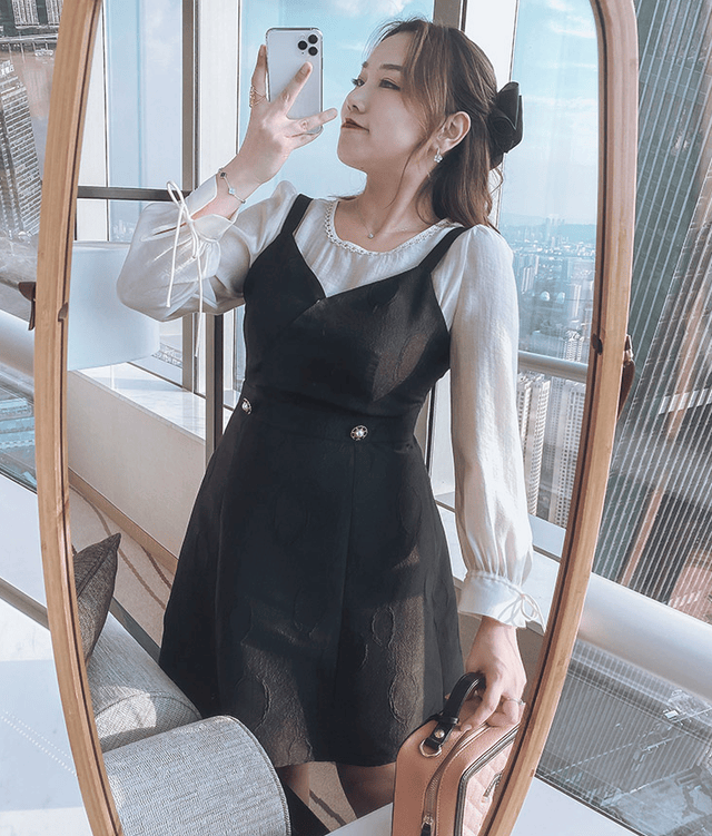 擔(dān)心肩部露肉會(huì)顯胖的話,里面疊穿一條襯衫的話也很可,既能夠起到了防曬的效果,也能讓吊帶裙穿出溫柔和甜美的感覺,特別適合性格安靜的女生。