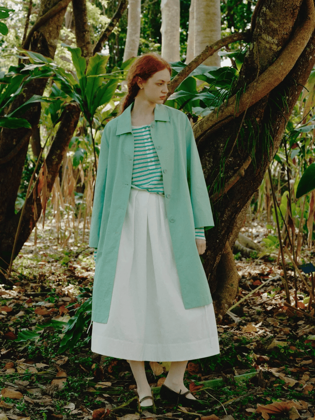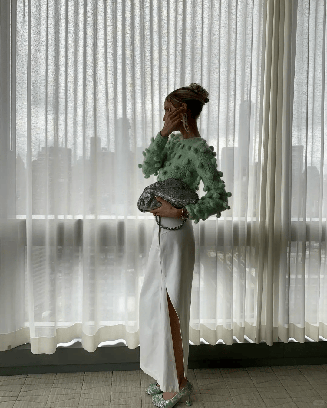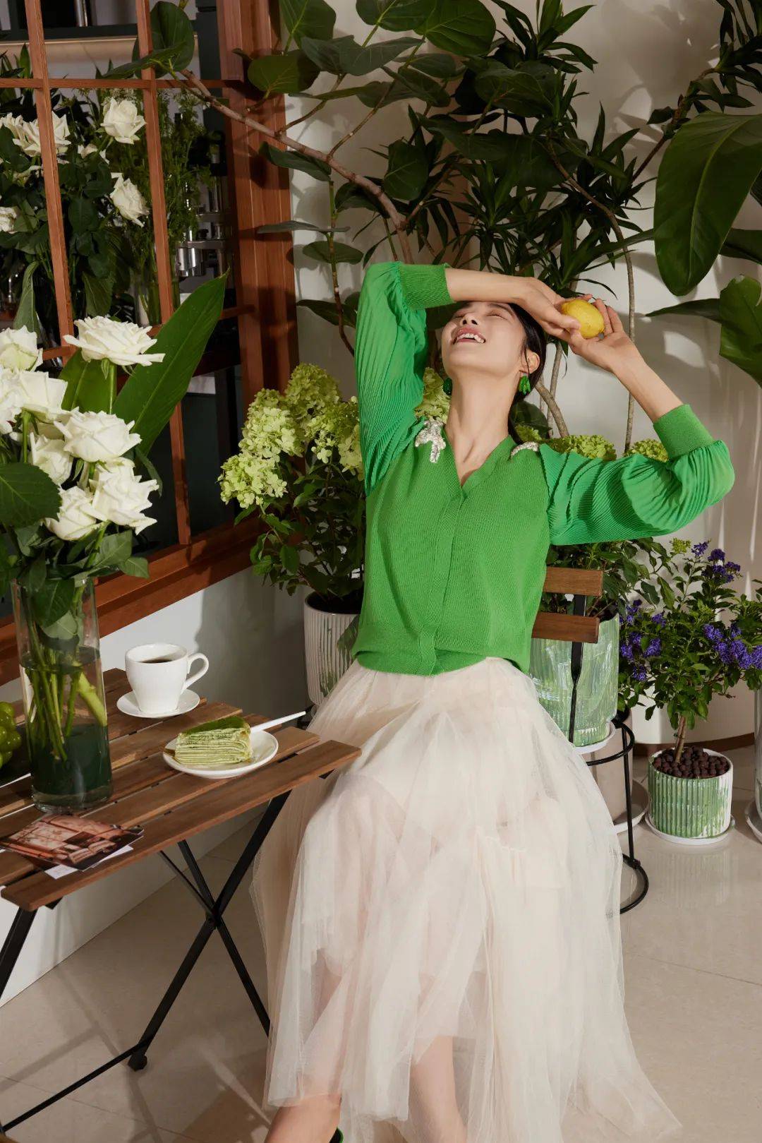 簡潔廓形與自然紋理面料的白葡萄綠單品紛至沓來,