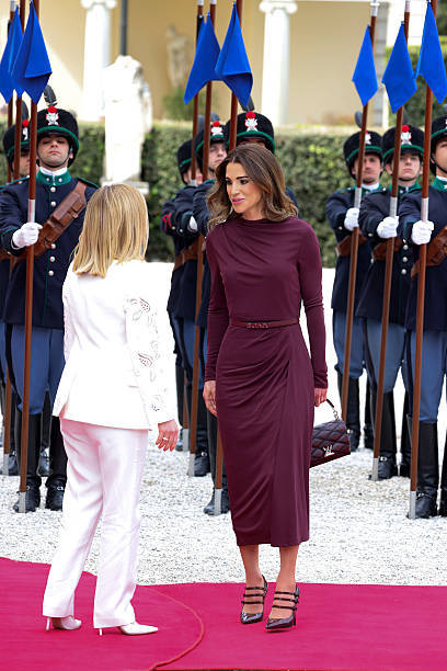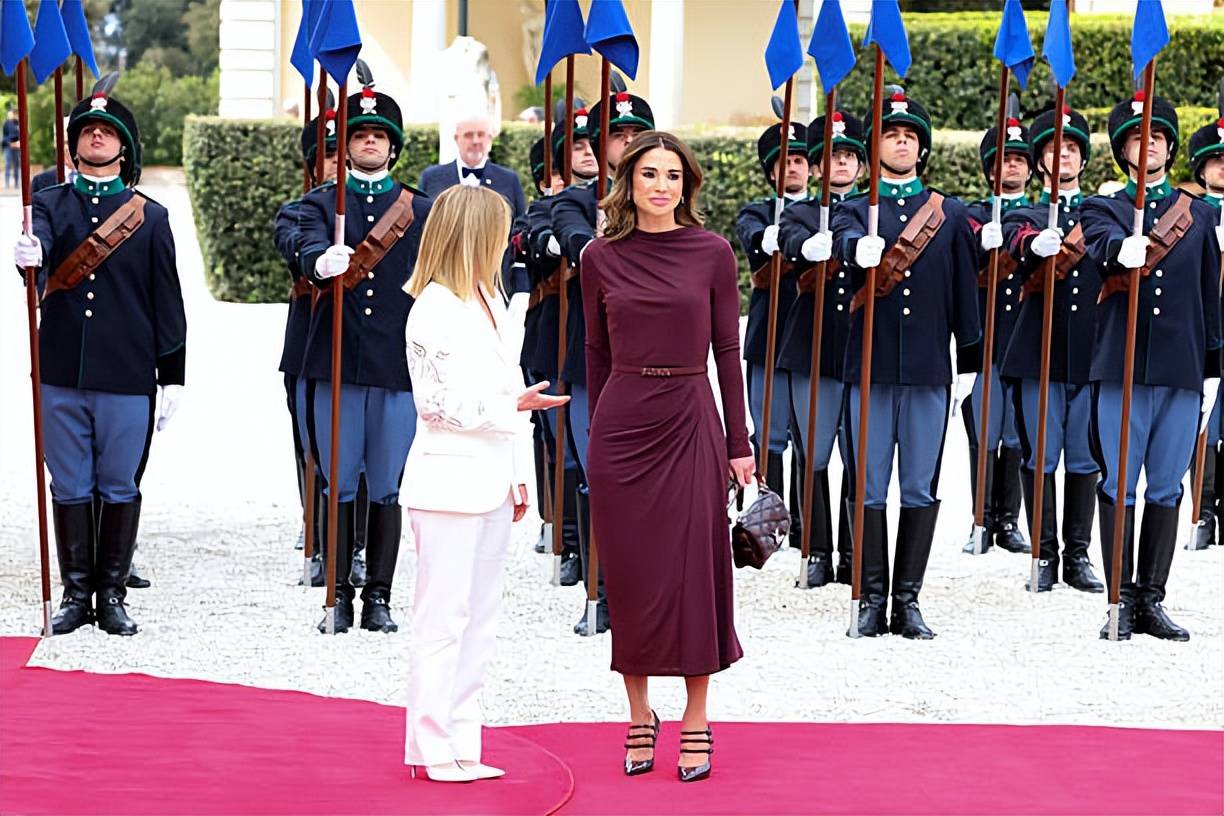 意大利美女總理梅洛尼這幾年很忙碌啊!英國國王查爾斯和王后卡米拉訪問意大利,而約旦王后拉尼婭也訪問意大利。當地時間4月9日,梅洛尼為約旦王后舉行了非常隆重歡迎儀式。梅洛尼這次還真是遇上了時尚對手,畢竟約旦王后一直以來身材都保持地很好,而且穿著打扮一直很在線。