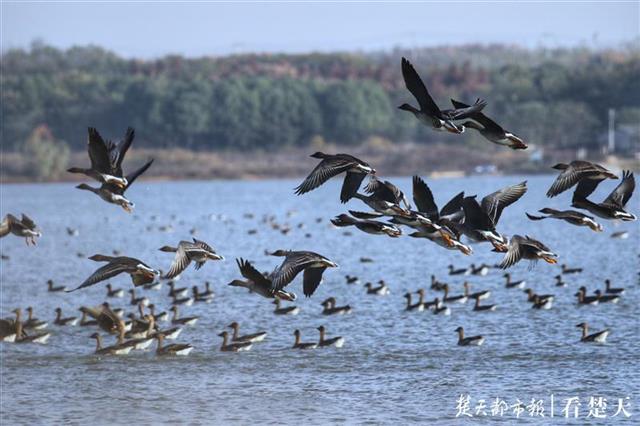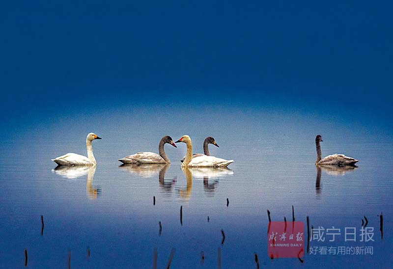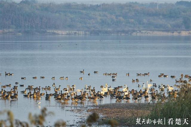 3日,咸安區(qū)斧頭湖濕地白鶴、天鵝、灰雁等一批國家珍希鳥類在此覓食越冬。