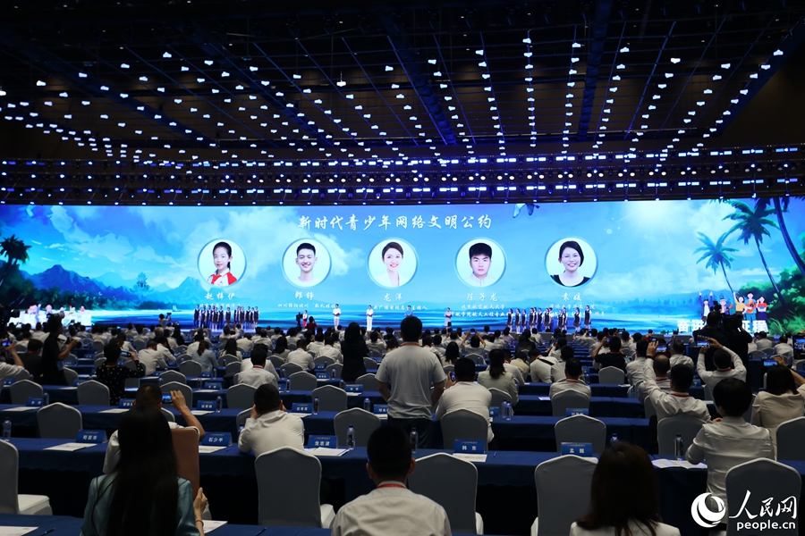 五位代表共同發布《新時代青少年網絡文明公約》。善惡美丑知明辨,誠信友好永傳承。網絡安全靠你我,共筑清朗好環境。