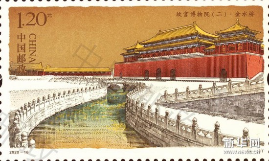 , 《故宮博物院.郵票圖案名稱分別為:金水橋、中和殿、乾清宮、千秋亭,小型張圖案為故宮博物院平面示意圖。故宮博物院表示,...