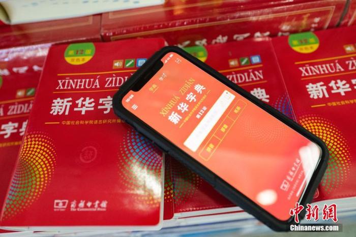 中新社記者 侯宇 攝" />8月11日,北京圖書大廈出售的《新華字典》(第12版)及同步上線的同名手機應用程序。中新社記者 侯宇 攝