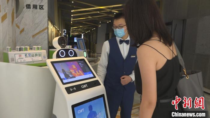 為了應對大客流,上海紅星電影世界采購了一臺測溫儀機器人,加快測溫速度。 康玉湛 攝