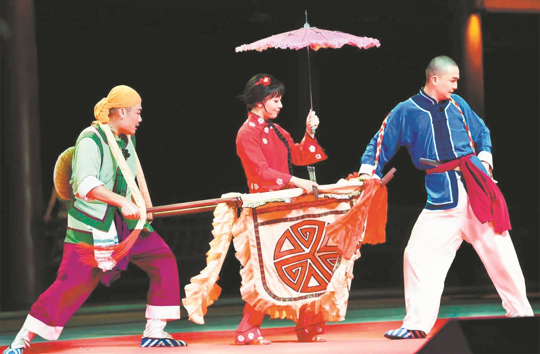 為給觀眾呈現最精彩的表演,武漢楚劇院45名演職人員準備了一份“大禮包”:經典楚劇折子戲《推車趕會》、歌曲《不忘初心》《國家》和楚劇小戲《審牛》。