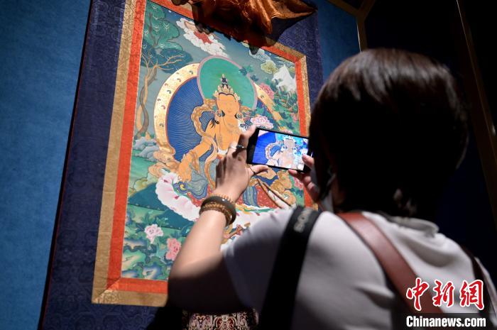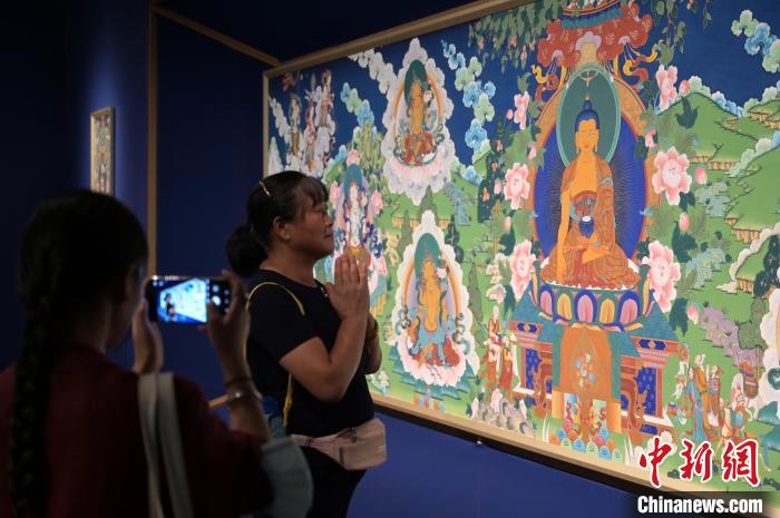 圖為觀眾欣賞唐卡藝術。 俞靖 攝