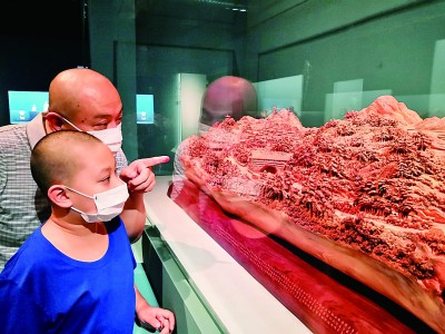 8月30日,“格物匠心——福建傳統(tǒng)工藝展”在中國(guó)國(guó)家博物館開(kāi)幕。200余件(套)不同時(shí)期的各類工藝美術(shù)作品,共同展現(xiàn)富有福建地域特色的傳統(tǒng)工藝在當(dāng)下的活力與魅力。其中,大型莆田木雕作品《閩鄉(xiāng)多錦繡》表現(xiàn)的是福建寧德下黨鄉(xiāng)在習(xí)近平總書(shū)記的領(lǐng)導(dǎo)和關(guān)懷下,于2019年脫貧后的新景象。圖為觀眾在欣賞《閩鄉(xiāng)多錦繡》。光明日?qǐng)?bào)記者 李韻攝/光明圖片