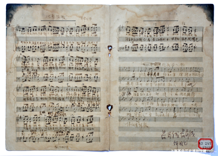 賀綠汀作《游擊隊歌》手稿