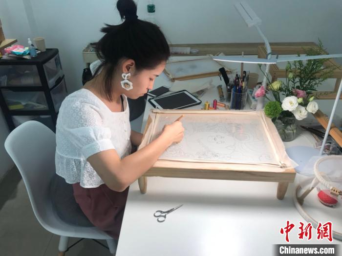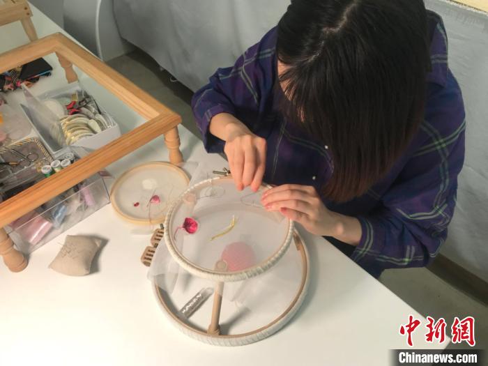 王玥正在刺繡。 岳依桐 攝