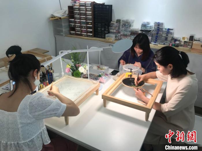 從設計、制作、選材、配色再到制作,工作室的產品按照大小、繁復程度不同,制作時間短則1周,長的話需要花上3至4個月。開業至今,工作室共銷售出10余幅作品,雖然收益不高,但三人對該行業未來的發展前景十分看好。