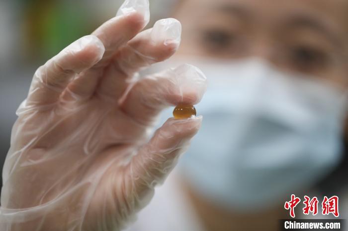 “大閘蟹需要搭配食醋和姜絲口味更佳,但蘇式月餅是酥皮的,添加液體醋會(huì)影響整個(gè)月餅的口感形態(tài)。為此我們研發(fā)了醋爆珠,能將鎮(zhèn)江香醋、生姜、糖等混合醬料包裹在食用海藻膠形成的外衣當(dāng)中。”甜希介紹說(shuō)。