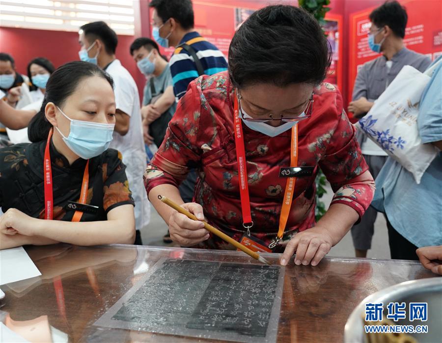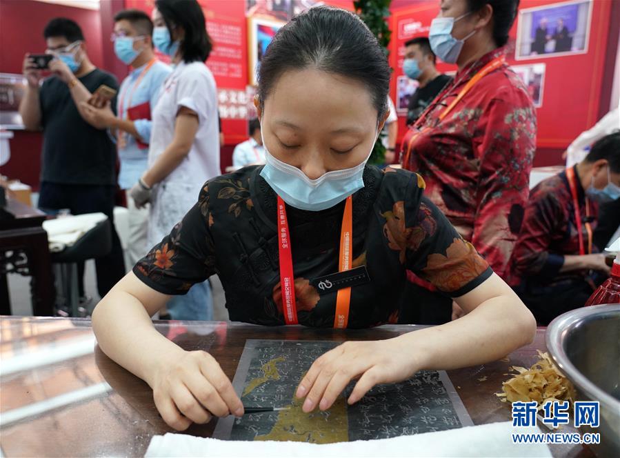 9月8日,文物修復(fù)專家呂成英在展示拓片修復(fù)技藝。 2020年中國國際服務(wù)貿(mào)易交易會9月4日至9日在北京舉行。在本屆服貿(mào)會文化服務(wù)專題展區(qū),文物修復(fù)專家現(xiàn)場展示文物修復(fù)技藝,讓觀眾近距離感受文物修復(fù)過程。新華社記者 張晨霖 攝