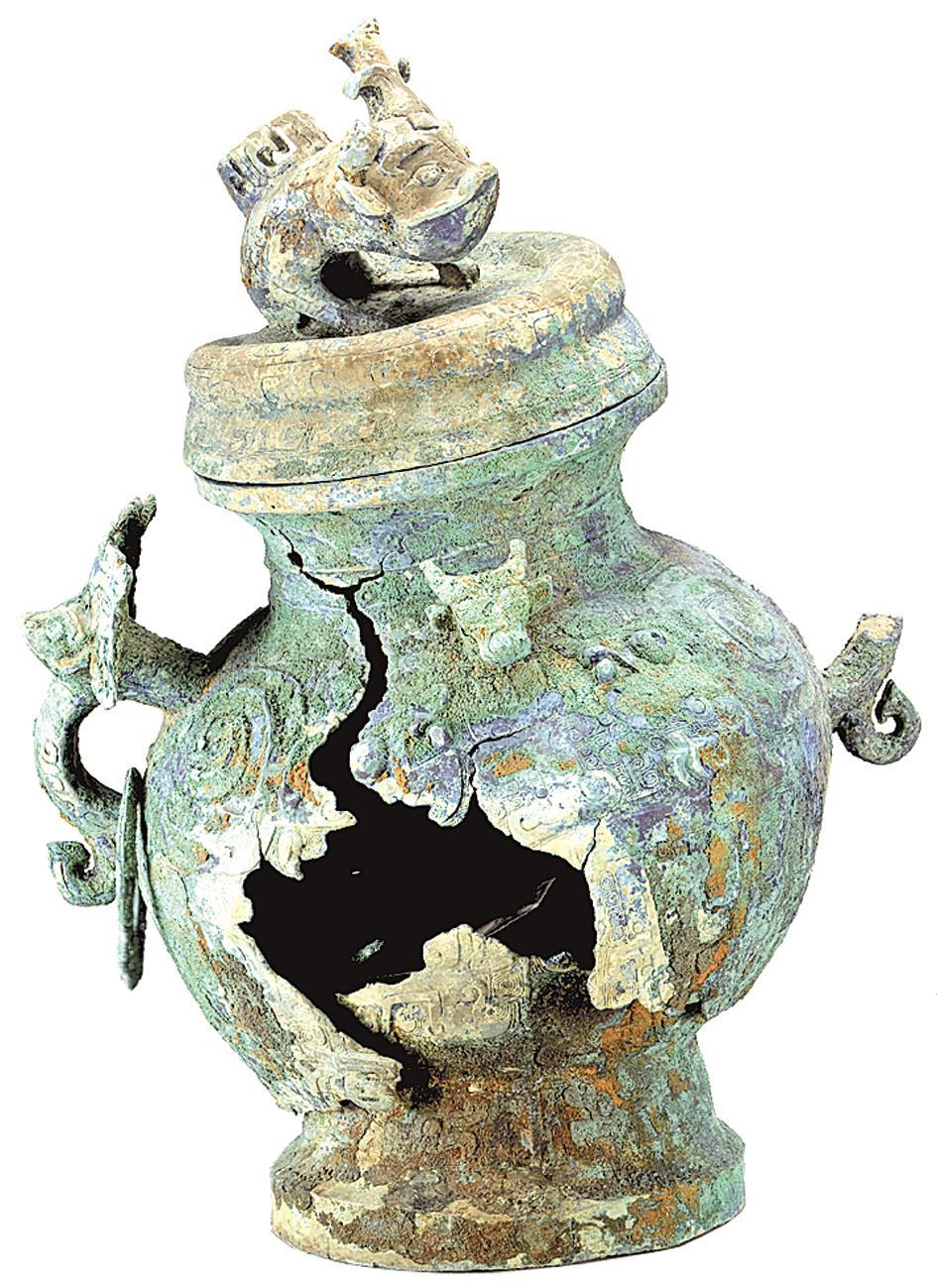 葉家山墓地出土蟠龍蓋罍修復前