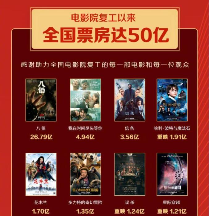 幾天前,電影行業(yè)還迎來了一個振奮人心的消息,據(jù)貓眼專業(yè)版數(shù)據(jù),截至9月14日19時29分,全國電影院復(fù)工以來(7月20日-9月14日)累計票房達(dá)到50億人民幣。其中《八佰》單片的貢獻(xiàn)超過了半壁江山。