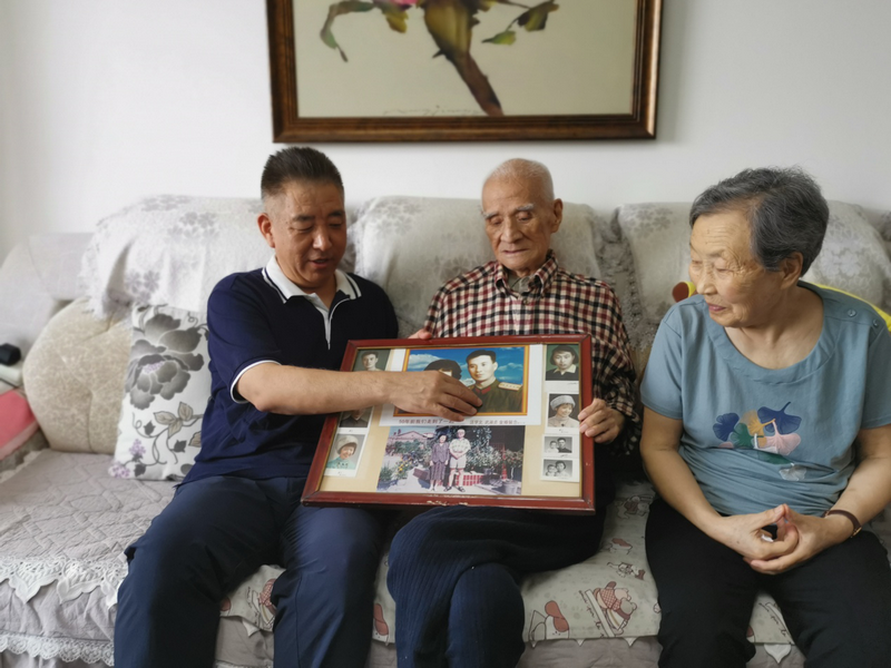 △2020年8月17日,總導演閆東(左一)在張家口市采訪時任志愿軍第46軍136師407團參謀汪學文。