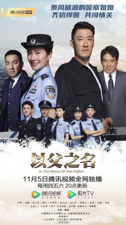 由中國國際文化傳播中心、公安部金盾影視中心榮譽制作,三次元影業、樂開花影業、視界觀影視榮譽出品,魏楠執導,于震、葉璇領銜主演,葉筱瑋、韓宇辰、趙思、汪晴、依靈等主演,朱時茂、郝平特別出演的38集青春勵志公安劇《以父之名》,將于11月5日晚八點登陸騰訊視頻全網獨播,每周四至周六20點更新2集,會員搶先看6集。11月19日20點起會員尊享超前點播,每周四提前看更多。該劇講述了以郝歡喜(葉璇飾)為首的姐妹團誤打誤撞進入黑幫販毒場所,成功打擊違法犯罪的故事。