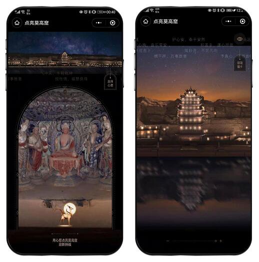 2月4日農歷小年,騰訊聯合敦煌研究院在“云游敦煌”微信小程序推出 “點亮莫高窟”功能,利用移動數字技術和區塊鏈技術,首次在線上重新呈現一千年前莫高窟的點燈夜景,在網絡空間復原了莫高窟燃燈民俗,與用戶共同打造莫高窟“一川星懸”的盛大場面。這是“云游敦煌”小程序邁入2021年的首次功能升級。該小程序于2020年2月疫情期間上線,一年間游覽量已突破2800萬人次。
