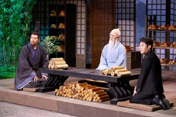 節(jié)目基于史料,對這兩則事件給予了鮮活演繹,與此同時還進(jìn)行了合理的藝術(shù)創(chuàng)作。戲劇舞臺上的老子,少年時期善于發(fā)問,青年時期勤于讀書,壯年時期精于思考,老師商容先生教誨他,應(yīng)當(dāng)把這股求知的欲望,轉(zhuǎn)化為為世間眾生求大道、求智慧的志愿。學(xué)成后,老子入守藏室為吏,這段守護(hù)典籍、努力為學(xué)的經(jīng)歷,極為動人。