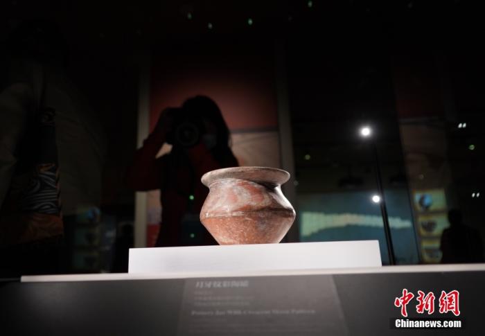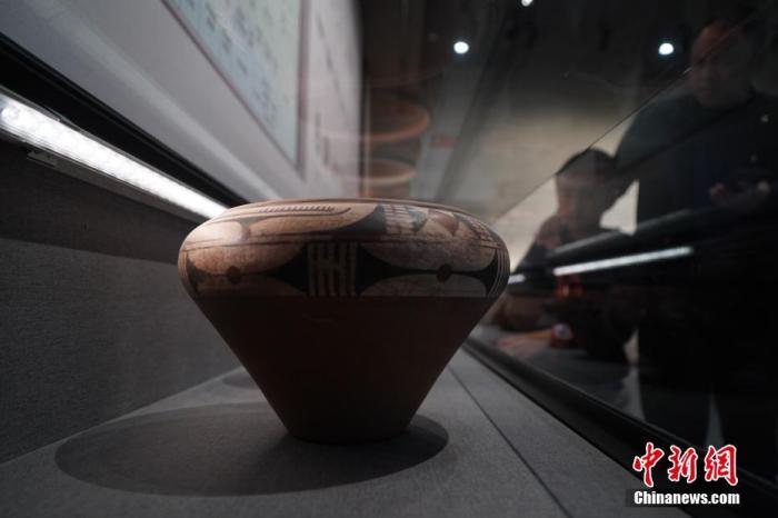 10月17日,記者探訪位于三門峽市的廟底溝仰韶文化博物館。圖為展出的陶罐。 中新社記者 闞力 攝