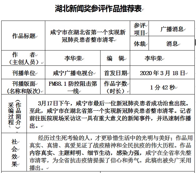 咸寧市在湖北省第一個實現新冠肺炎患者整市清零