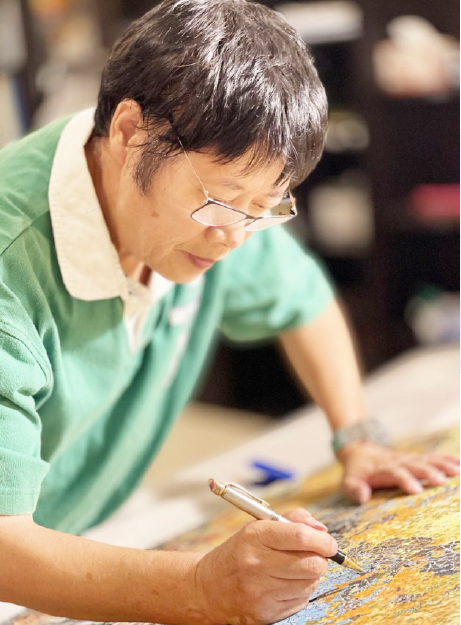 內蒙古采風結束后,他和夫人帶著采風收集到的胡楊素材,及在國內買到的長卷用紙,又到了美國,2019年10月下旬正式開始胡楊長卷的創作。