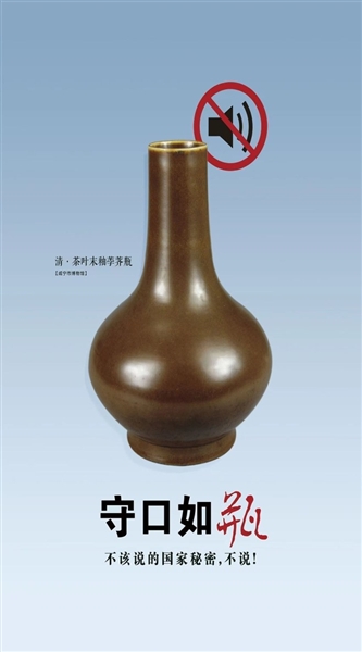 該組海報(bào)通過咸寧代表性文物和保密宣傳標(biāo)語相結(jié)合的形式進(jìn)行創(chuàng)作,選用契合主題的咸寧市博物館館藏文物“印、瓶、壁、鐘”,利用禁止上網(wǎng)、消音、聲浪等平面視覺符號,通過虛實(shí)結(jié)合的設(shè)計(jì)手法,既言簡意賅地表達(dá)了保密工作的重要性,又很好地展示了咸寧文物的魅力和形象。