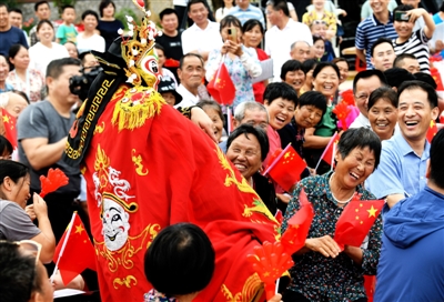 臺上,演員們傾情為大家帶來湖北大鼓《如此媳婦》、雜技《中國力量》、川劇《變臉》等形式多樣、內容豐富的文藝表演;臺下,老百姓興致勃勃地欣賞演出,不時發出喝彩聲、鼓掌聲。