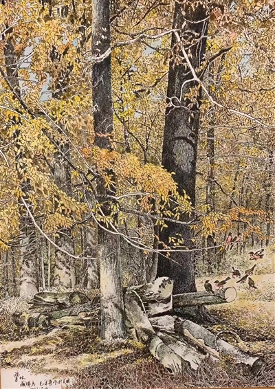 毛才奇老師作品題材多樣,人物、花鳥、山水都有,但是他的最愛是楓楊。