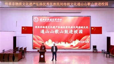 通山縣職教中心校長金漢垂介紹,該校將通山山歌等通山非物質文化遺產作為學校地方課程,并聘請專家擔任學校兼職教師,讓學生們了解并學習通山山歌、山鼓等地方傳統技藝,希望將散落在通山這片土地上的獨有文化、將非物質文化遺產一代一代傳承下去。