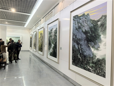 走進展廳,一幅幅精美的山水畫作品呈現眼前。《走進西部》《情系河山》和《夢里家園》,多視角、多層次、多面貌地構建了一幅中國山水的雅致畫卷,濃淡勾勒出我國各地的風光、風情。