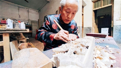 12月20日,記者走進(jìn)通山縣非遺館,一件精工雕鏤的木雕作品“看櫥”引人駐足,樓臺(tái)亭閣玲瓏剔透,綻放的花朵,靈動(dòng)的神獸,細(xì)節(jié)栩栩如生。