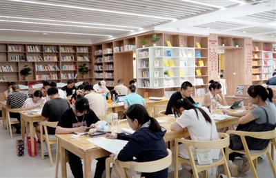 “這里交通便利,空調(diào)全天免費(fèi)開放,我一大早就在這里排隊(duì),因?yàn)槿诉€是挺多的,要占位置。這里很安靜,在家學(xué)習(xí)沒有這種氛圍。”讀者雷俊說。