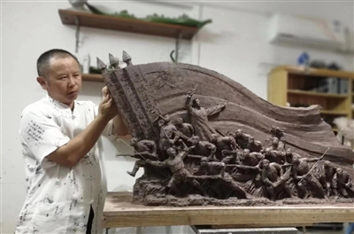 今年是桂宏偉與藝雕“過招”的第三十個年頭。這些年,他經手做出的精美工藝作品數量之多,令人驚訝。“一切的成績皆因為緣分和堅持。”桂宏偉將他的雕塑成就歸功于此,他也用一把刀雕刻出了自己的“藝術人生”。