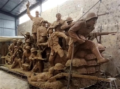 功夫不負有心人,以通城紅色文化為創作背景的大型雕塑《八百壯士》《羅榮桓銅像》等橫空出世。其中《羅榮桓與通城8·20暴動》是技術難度最高的,歷時3年時間才完成。