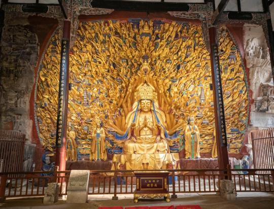 聽文物講故事|“世界石刻藝術之瑰寶”重光——大足石刻千手觀音背后的故事千百只手臂自崖壁上次第展開,如層浪疊涌.”大足石...